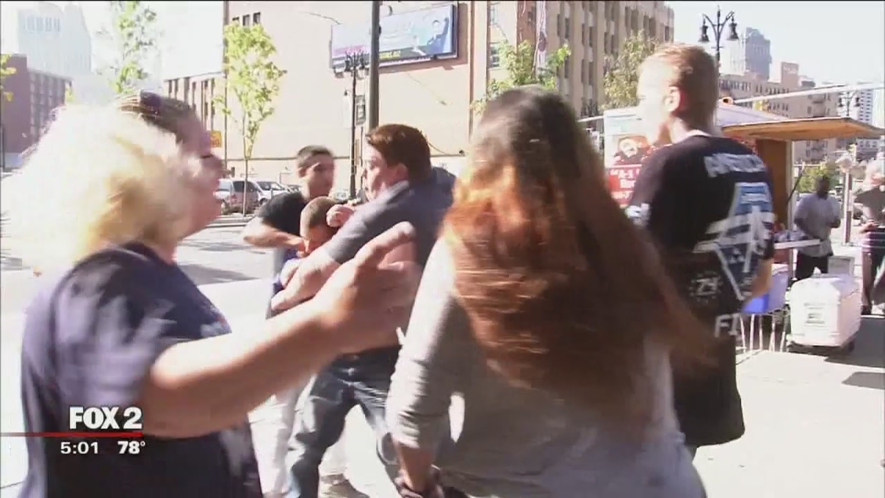 A fight broke outside of 36th District Court Thursday morning after two men were arraigned in the murder of a pregnant Melvindale woman.