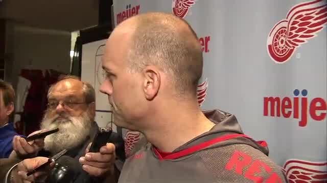 Red Wings' Head Coach Jeff Blashill and players Justin Abdelkader & Dylan Larkin spoke following their morning skate before final opener at Joe Louis Arena.