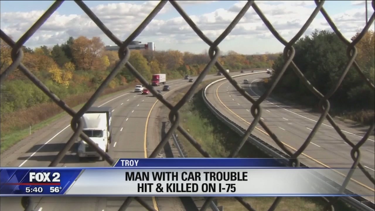 Troy police say 43-year-old Patrick Arthurs' 2004 Cadillac broke down on I-75 just south of the Crooks Road overpass. The hood was up and he was standing by his car.