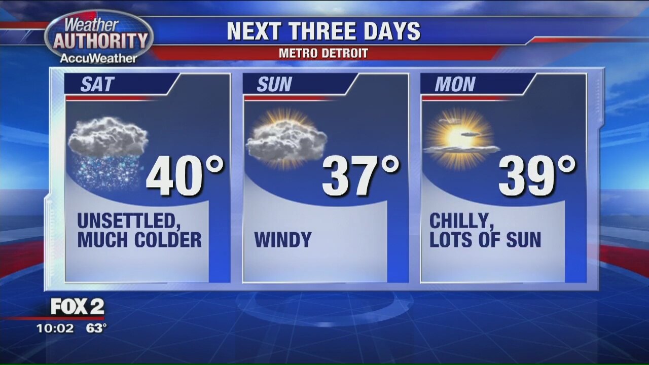 Strong thunderstorms for part of SE Michigan Friday gives way to colder temps this weekend.