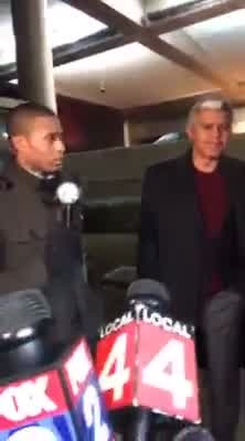 Wayne State Police Chief Anthony Holt and president Dr. Mr. Roy Wilson speak to the media about Tuesday's shooting of an officer off-campus.