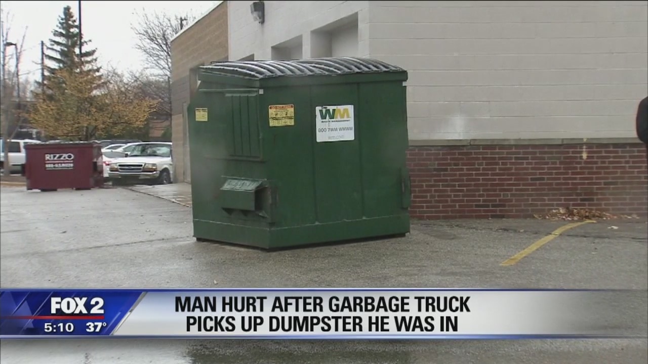 A man is being hospitalized after becoming trapped in the back of a garbage truck.