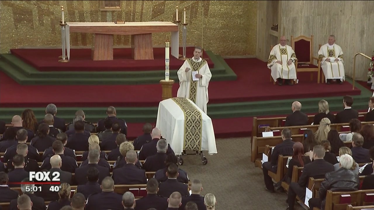 For the second time this year St. Joan of Arc church in St Clair Shores served as the venue for an officer killed in the line of duty. Hundreds of police cars lined the street as part of an outpouring of emotion for the fallen Wayne State police officer.