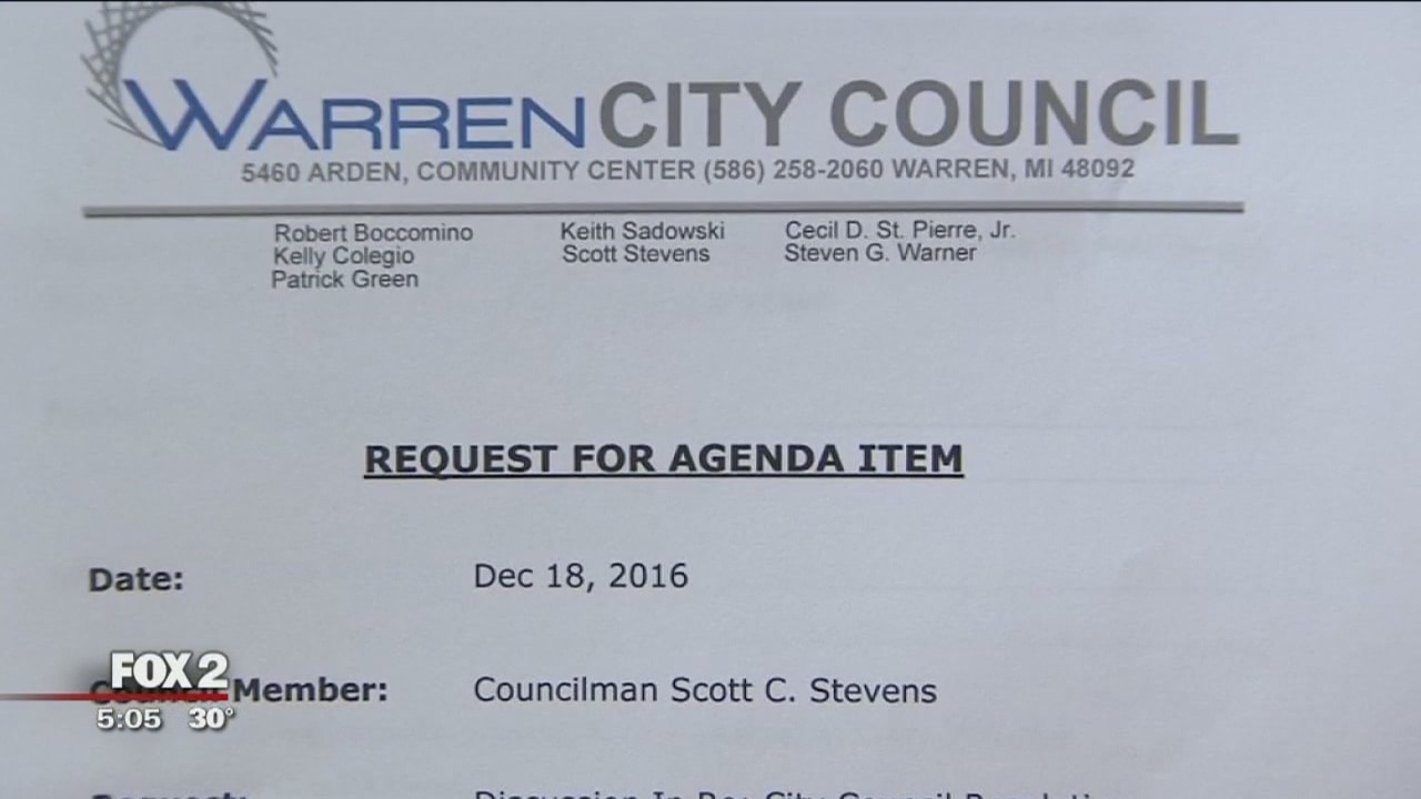 The heat continues to be on Warren Mayor Jim Fouts, including a new agenda item to make him take a lie detector test.