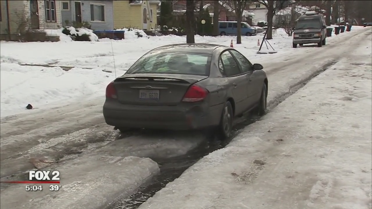 Now that the water is freezing over, one Detroit neighborhood is hoping the city will finally fix a fire hydrant that's been spilling out water since summertime.