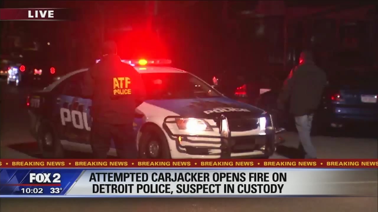 An attempted carjacker was taken into custody after he fired gunshots at Detroit Police officers.