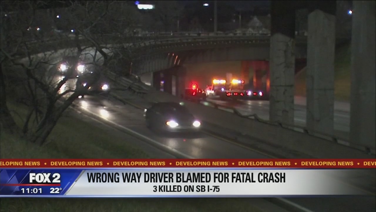 3 dead, 2 injured in wrong-way crash on I-75 in Detroit