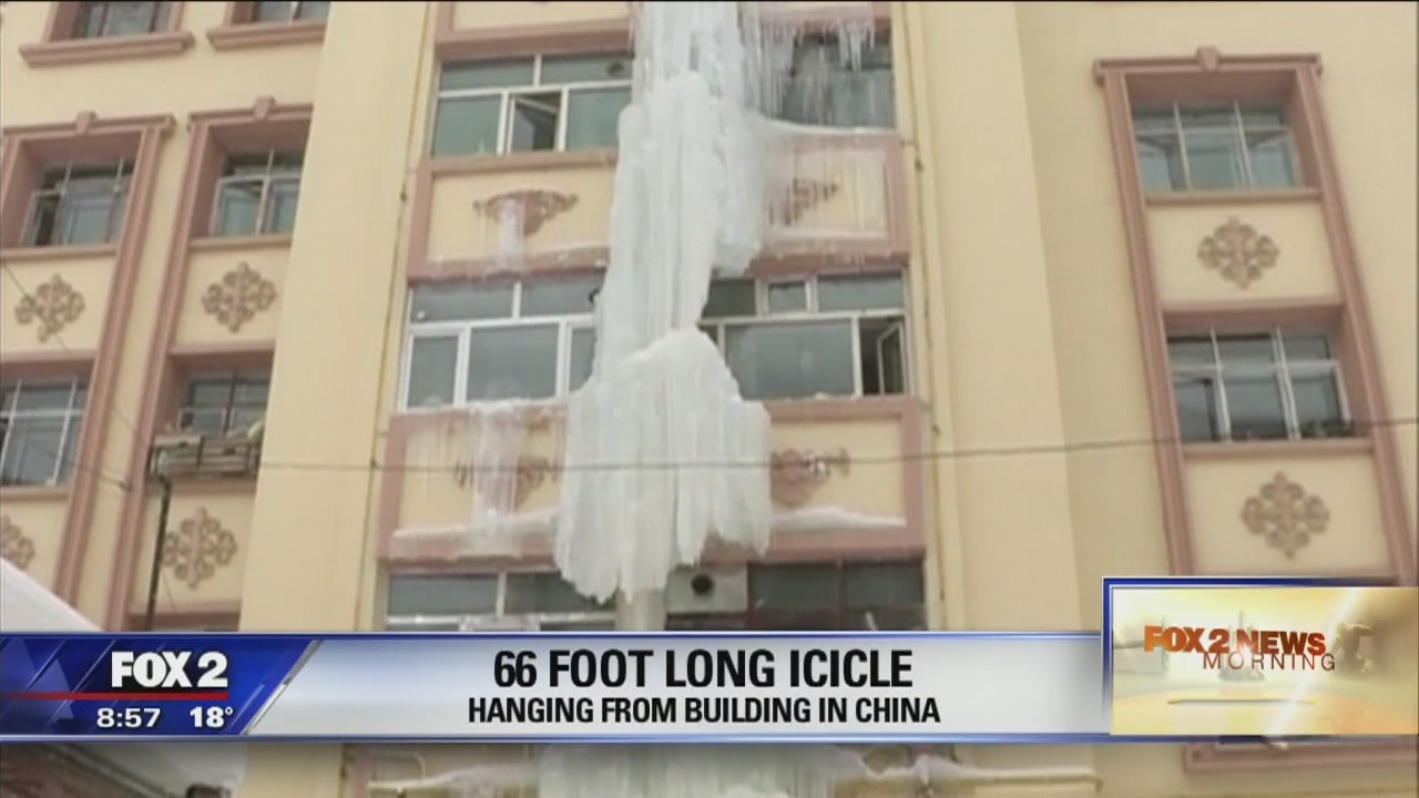 66-foot icicle hanging from building in China
