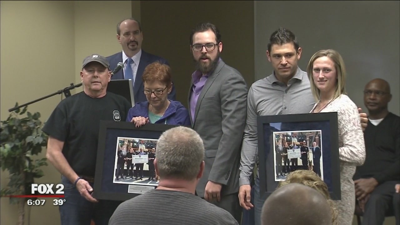 The Detroit Tigers made a somber stop to remember a Wayne State University police sergeant who fell in the line of duty.
