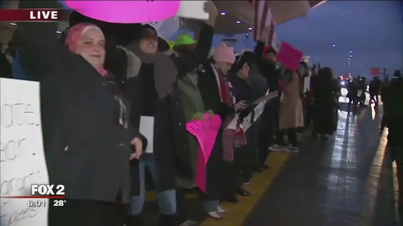 Hundreds protest Trump immigration order at Detroit Metro airport