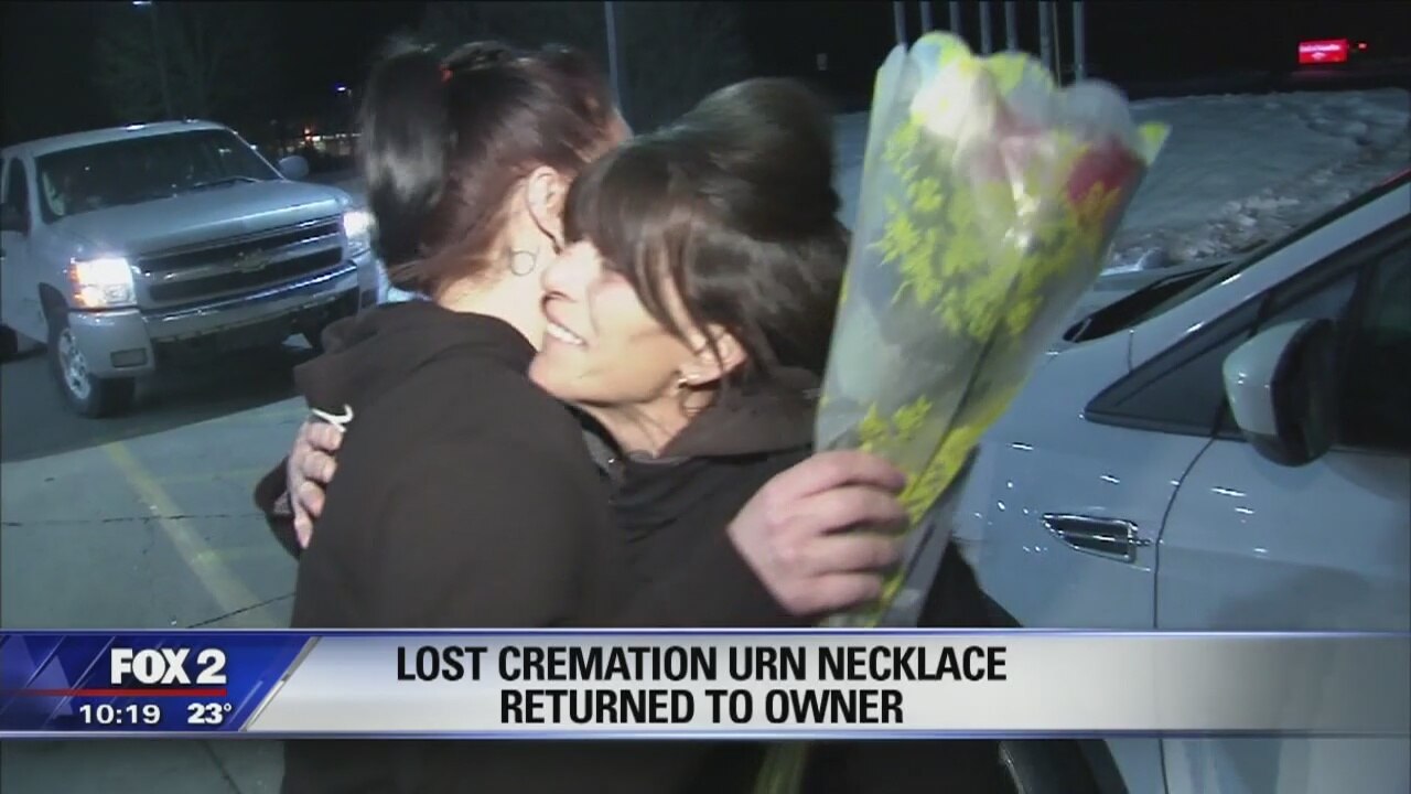 Sarah Happel of Detroit was thrilled to get an aqua colored heart shaped necklace back, which contains her father's ashes.