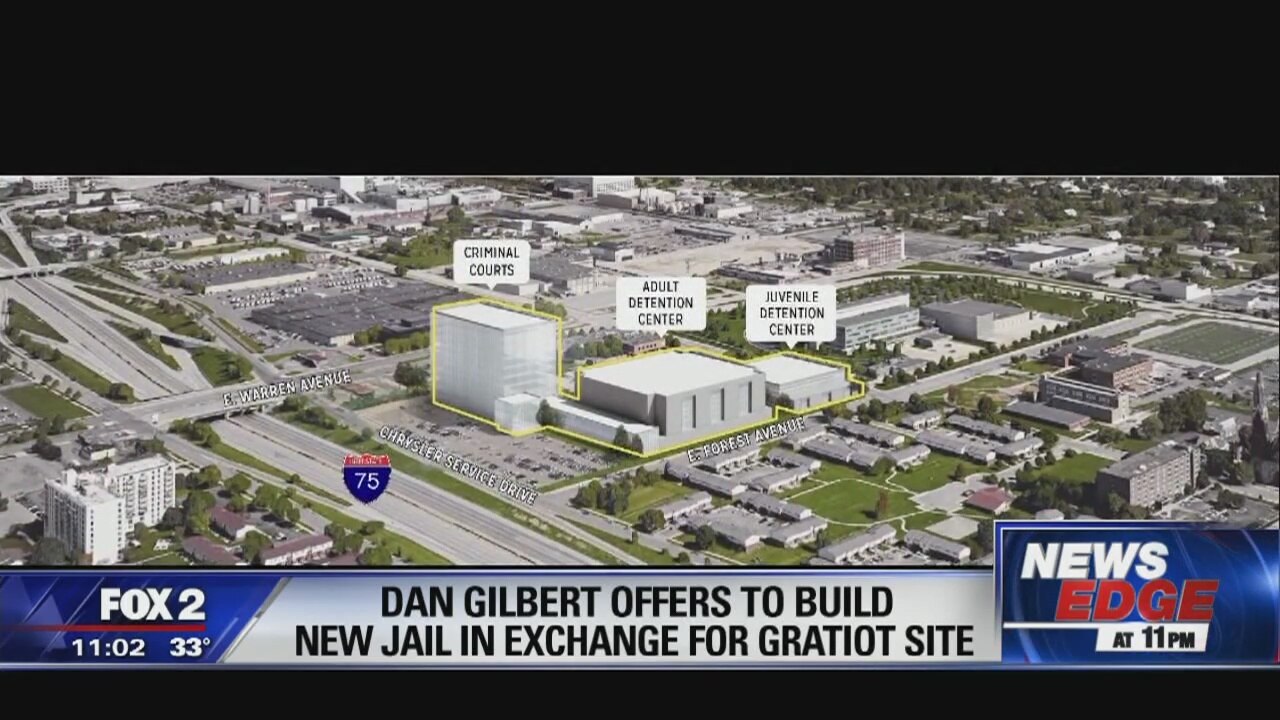 Dan Gilbert is pulling all stops to acquire Wayne County's unfinished jail site and county owned land around it.