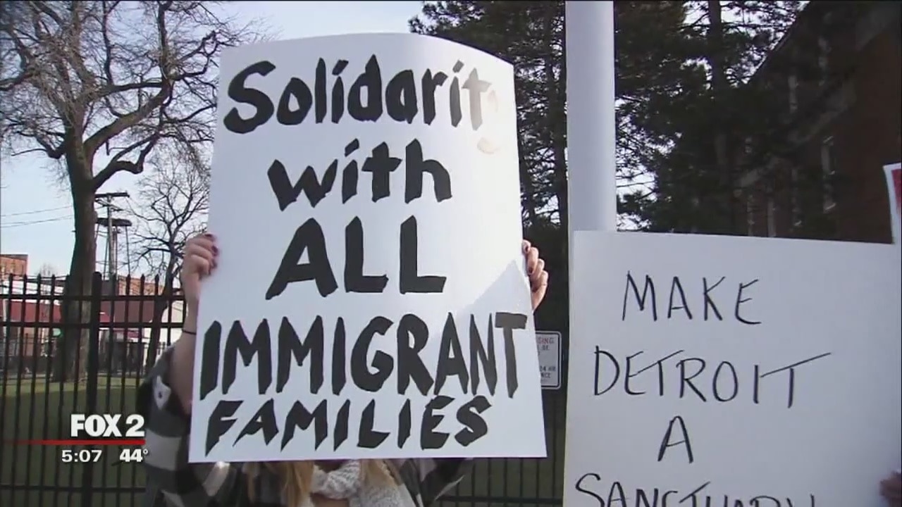 Anti-Trump protesters gathered Friday afternoon at the corner of Mt. Elliot and East Jefferson.