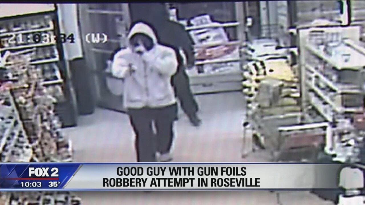 A couple of crooks picked the wrong liquor store to knock off. They were packing heat, but so were the people inside.