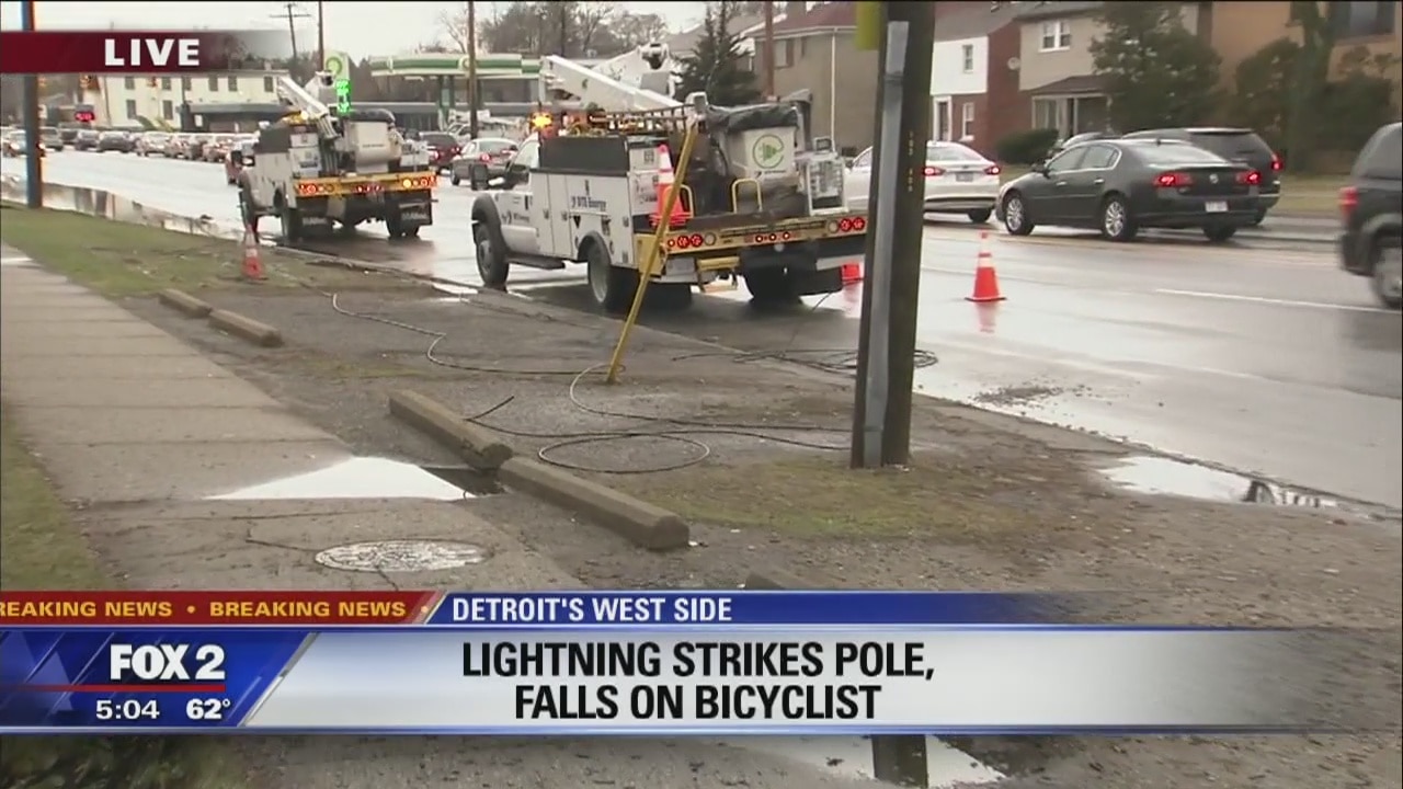 Lightning strikes pole, wire injures bicyclist on west side