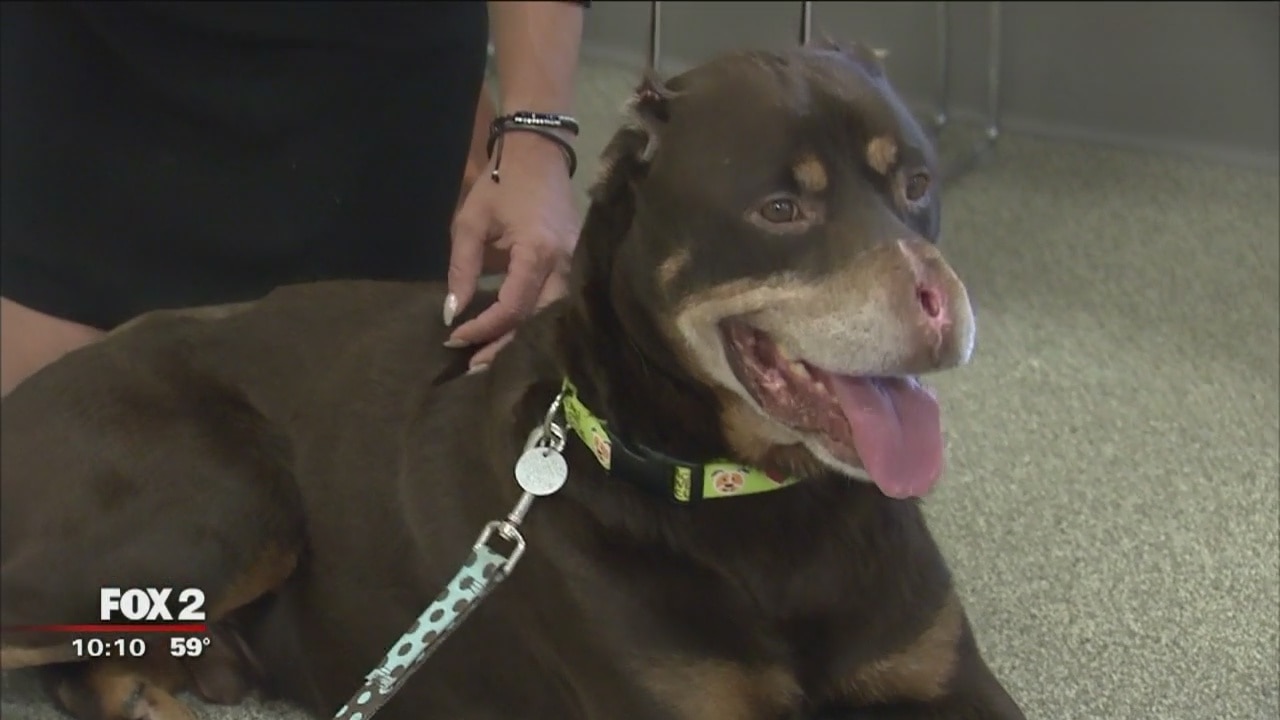 It's hard to believe the brown Rottweiler affectionately named Baron is gentle and friendly after enduring some of the most horrific abuse anyone has ever seen.