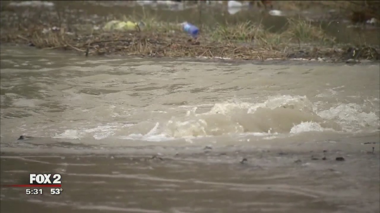 A massive mess on Detroit's west side fter a broken water main starts spewing causing a big hole and flooding the street.