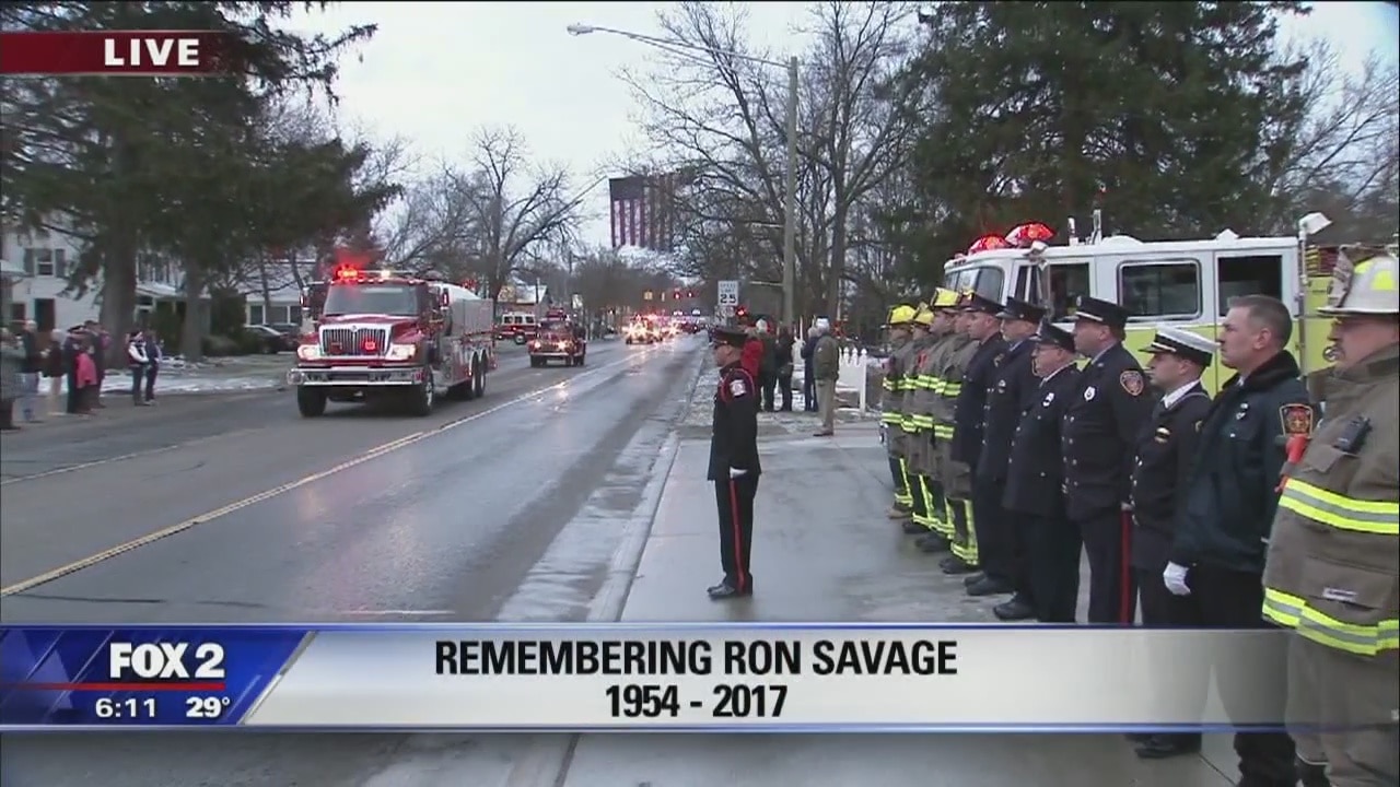 A last call for fallen firefighter Ron Savage and the ensuing funeral procession which went through downtown Milford.
