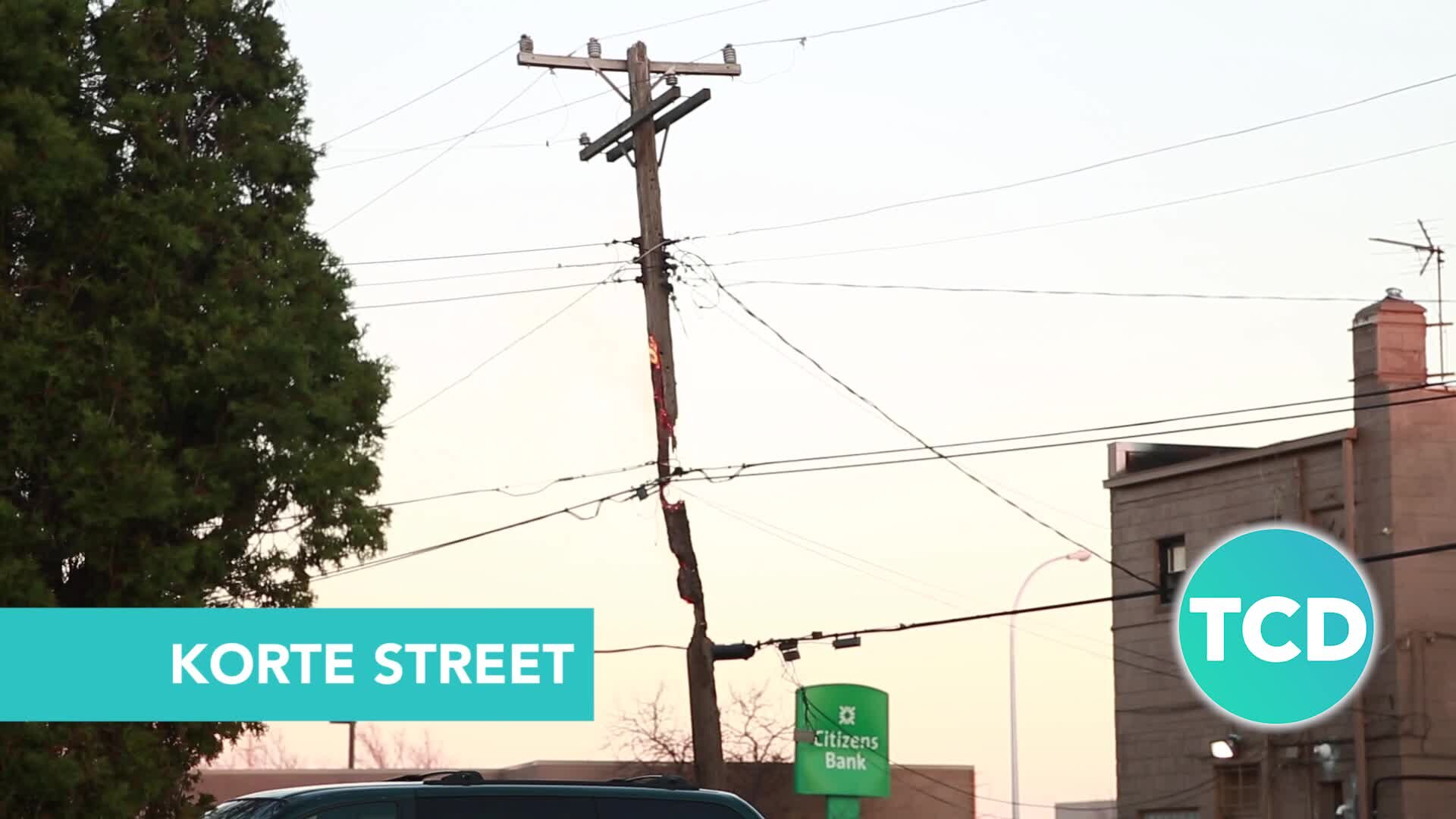 Video shows burning power pole collapsing in Dearborn