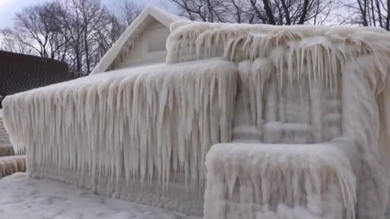Great Lakes home completely encased in ice