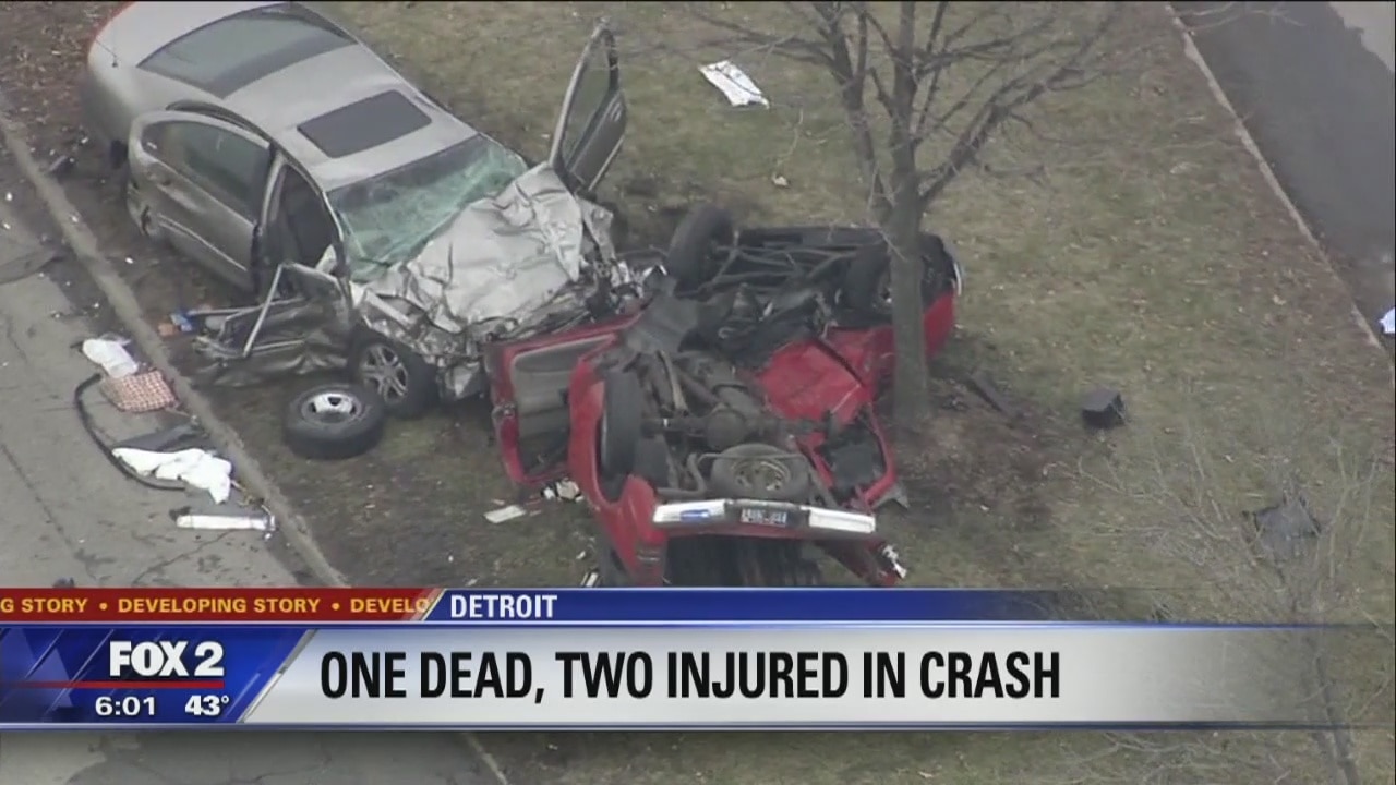 One person is dead and two are injured in a crash at Woodward and State Fair.