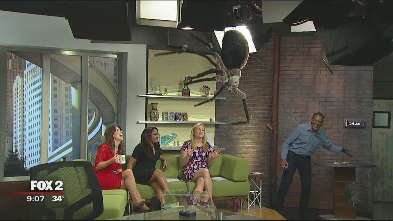 The ladies of The Nine get pranked by a giant spider hanging from the ceiling.