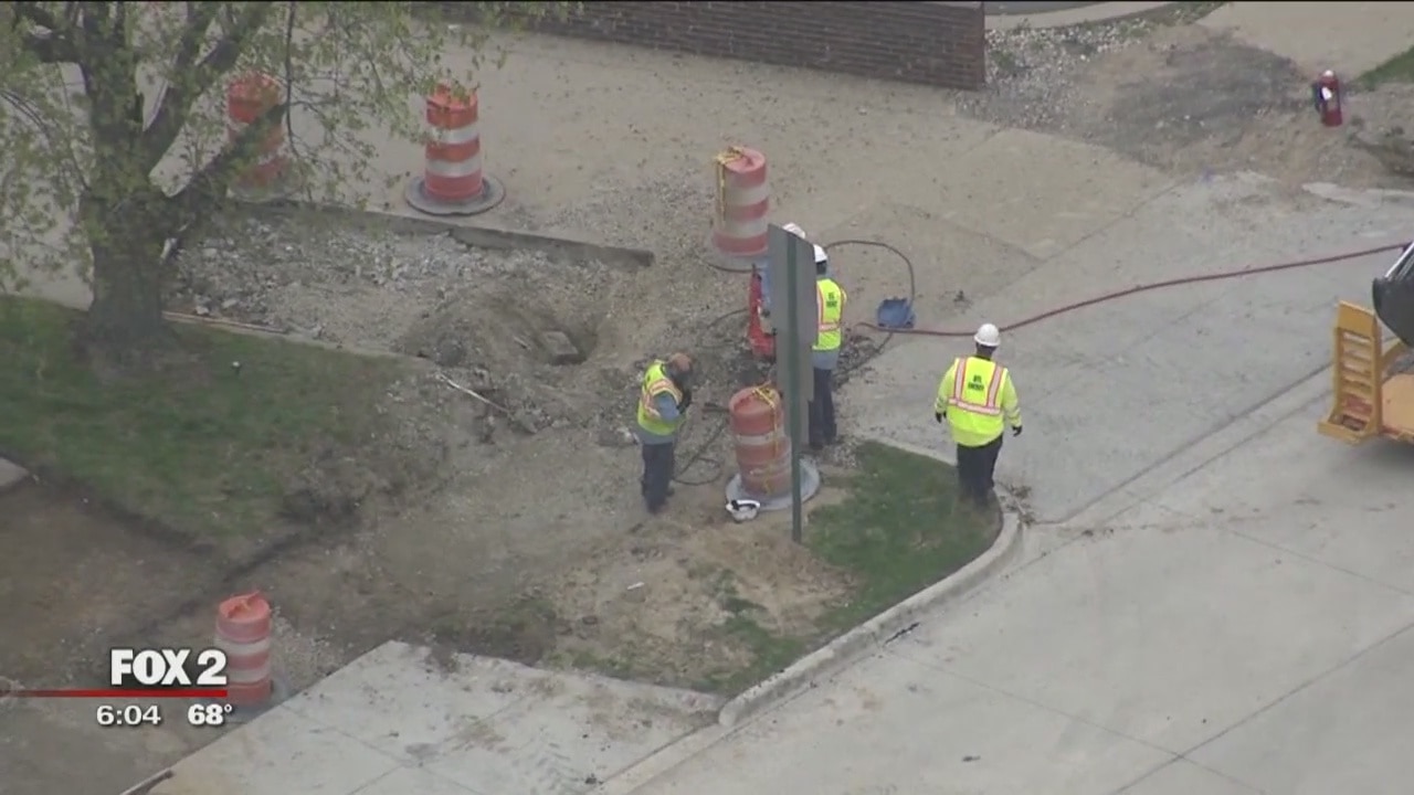 A sidewalk redevelopment project in Grosse Pointe Woods hit a snag or rather a gas line Thursday morning.