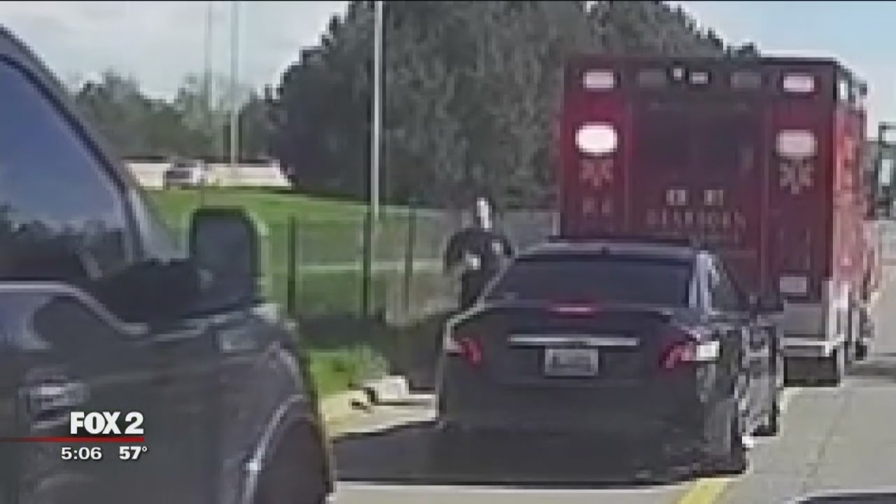 In a video taken in Dearborn, the driver appears very close to the ambulance.