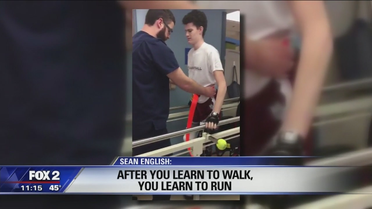 Sean English, the high school student, severely injured while helping victims of a car accident is making progress with his rehabilitation.