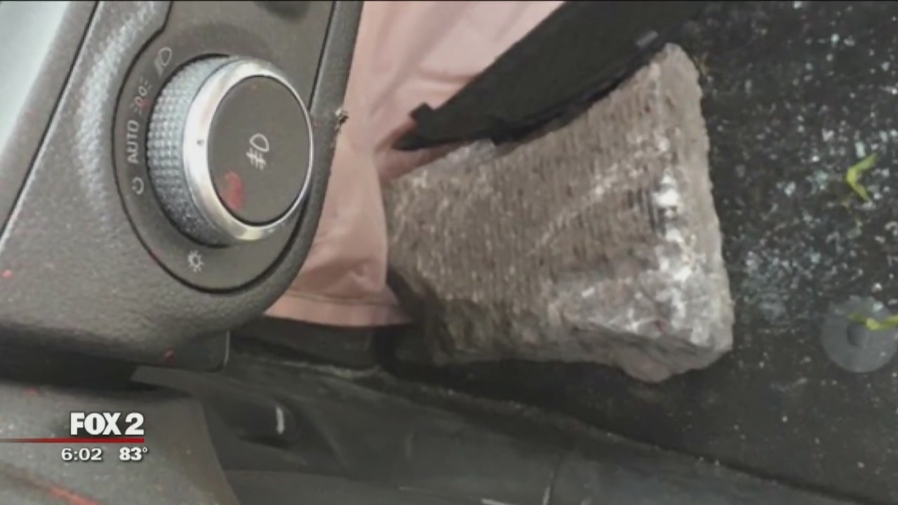 Highway horror - a chunk of concrete flies up from the road -- and through the windshield of an unsuspecting driver.