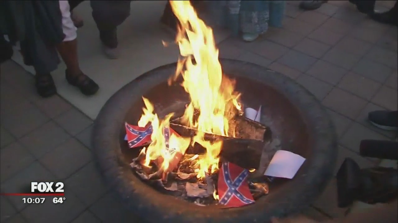 Detroit artists bury, burn the Confederate flag