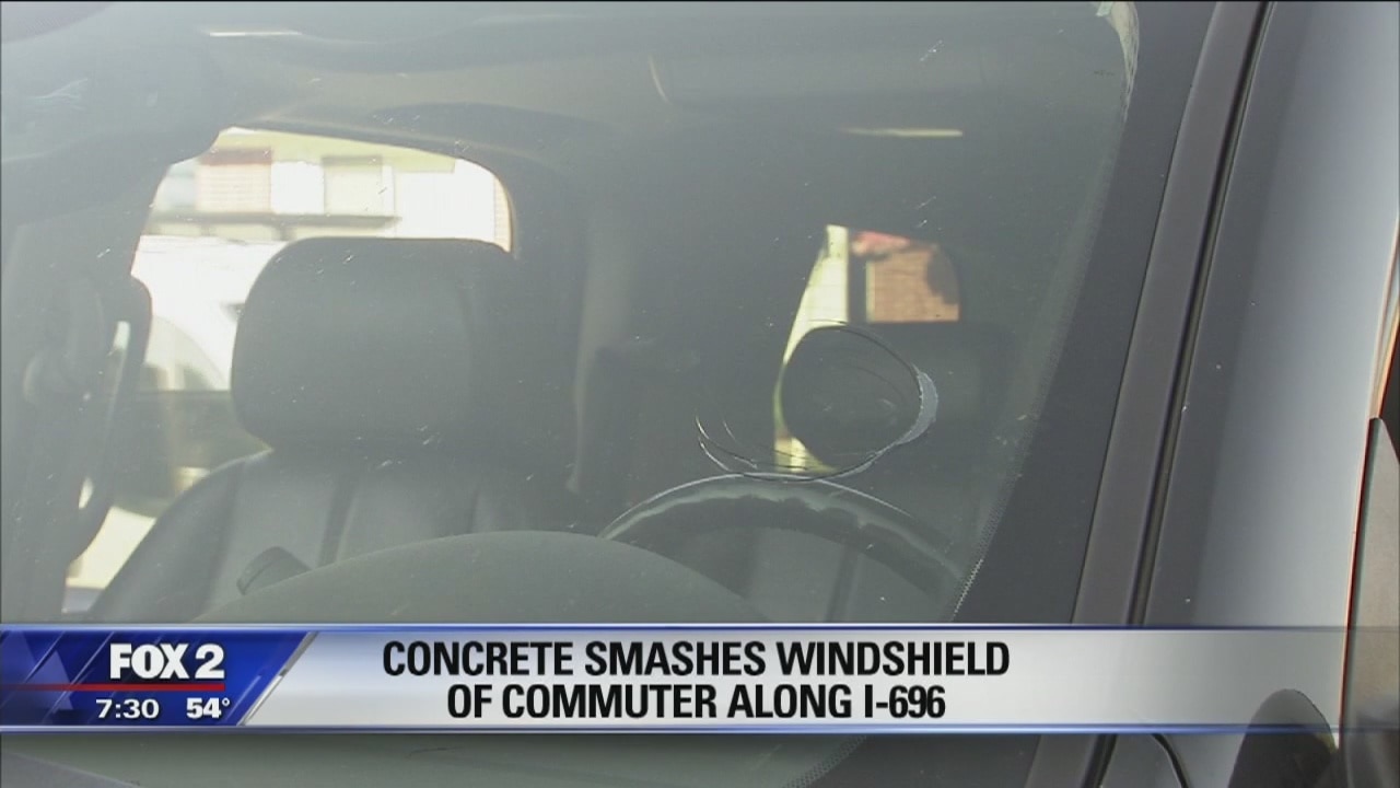 Another vehicle traveling along Interstate 696 has been damaged by a piece of loose concrete.