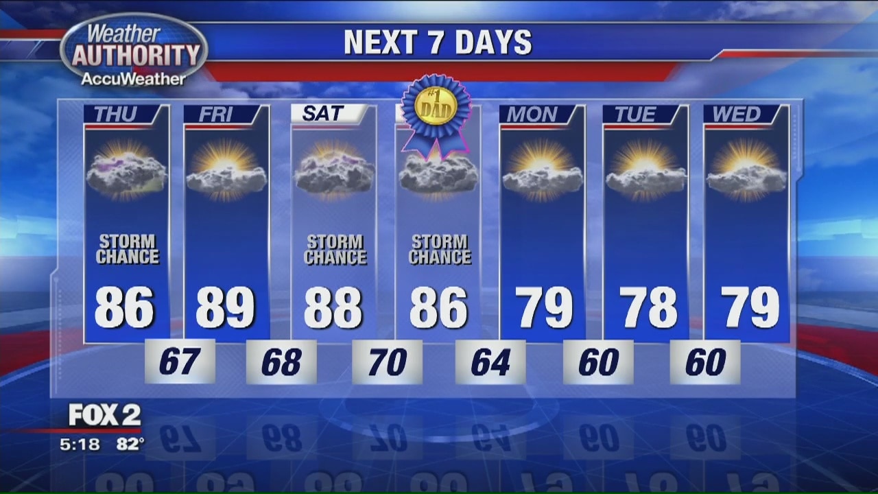 Chance of storms Thursday