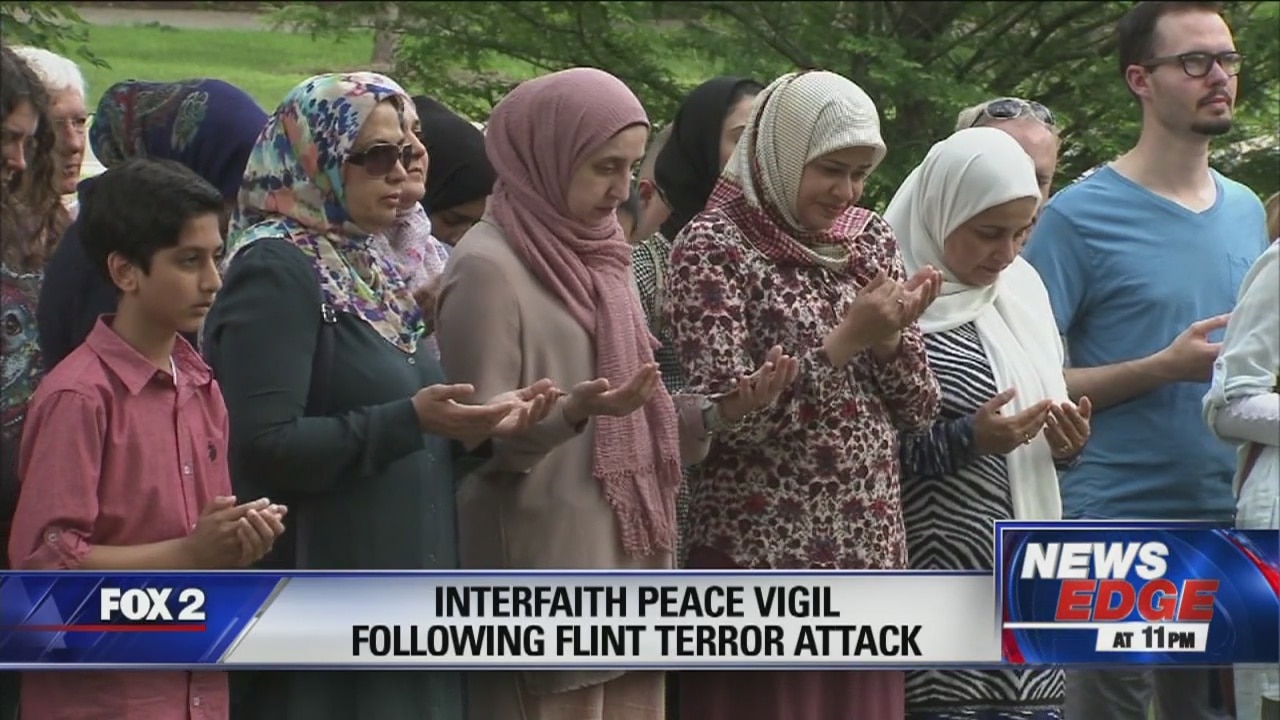 People of all faiths came together for a peace vigil one day after a police officer was stabbed in Flint.