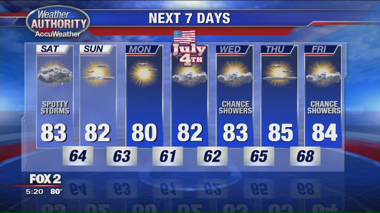 Early scattered storms Saturday
