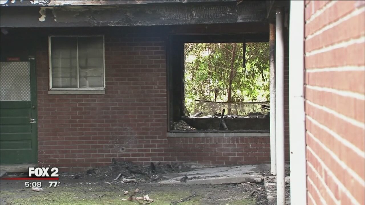 Fire tore through an apartment building on Detroit's east side on Monday morning.