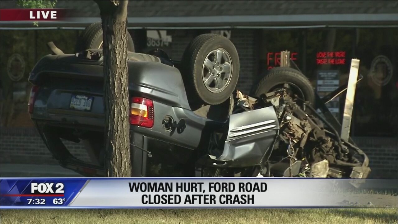 Woman flips car driving wrong way on Ford Road, police say alcohol was a factor