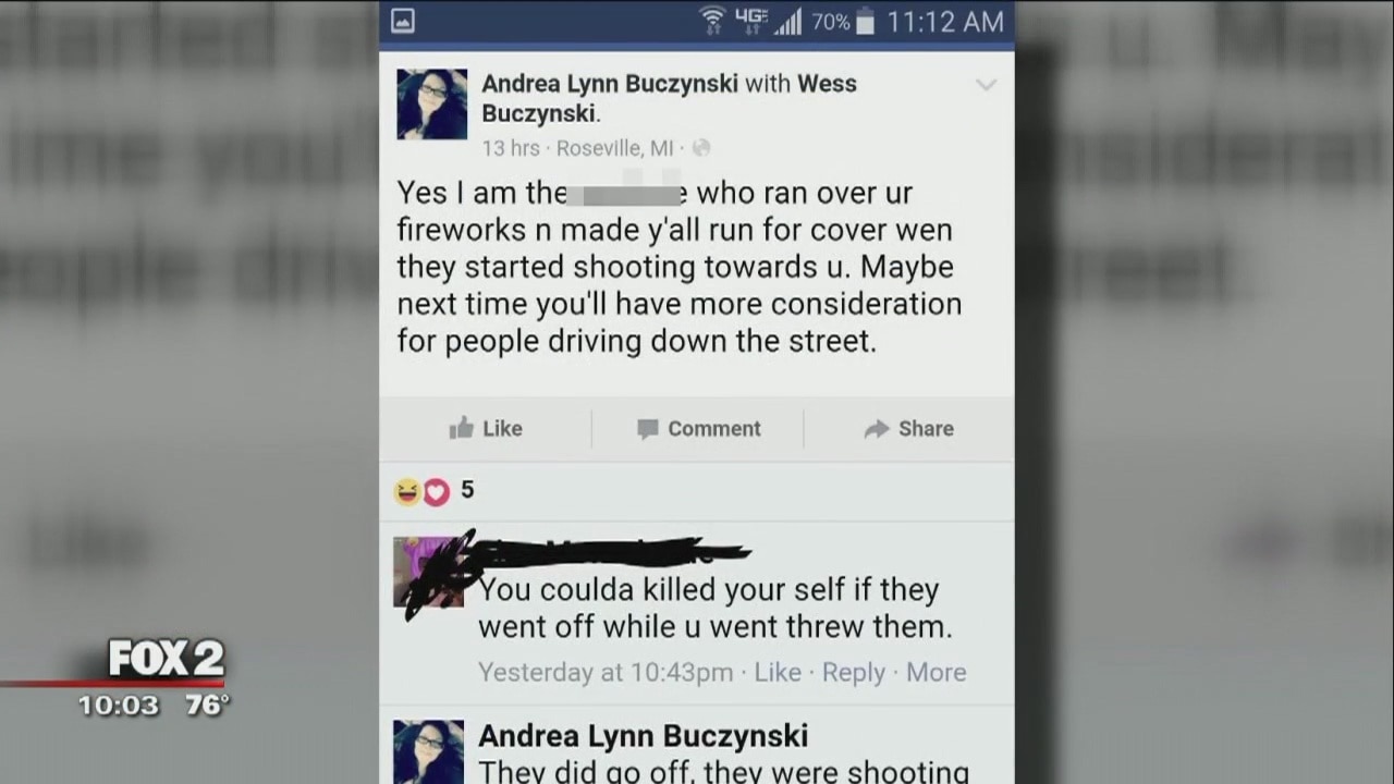 Facebook post by woman who ran over fireworks in street ignites war of words