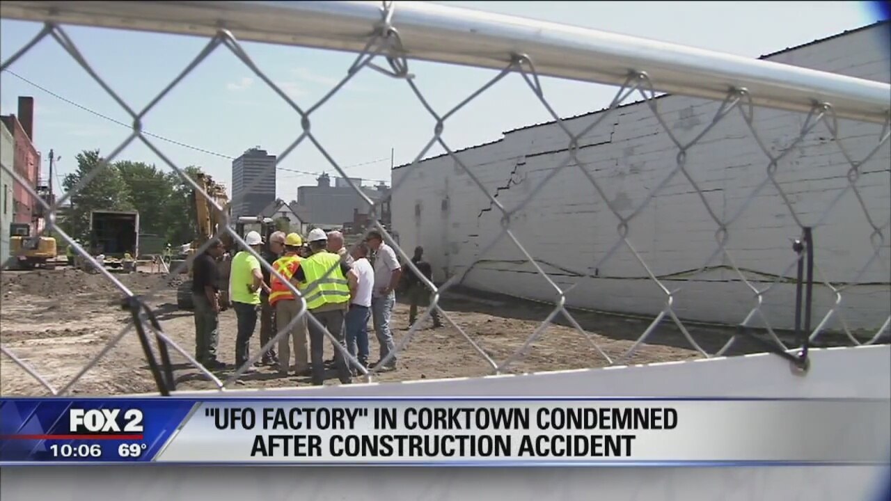 On the first day day of construction of Corktown's Elton Park project - a confrontation after a construction crew, who was digging a trench cracks the wall of the UFO Factory.