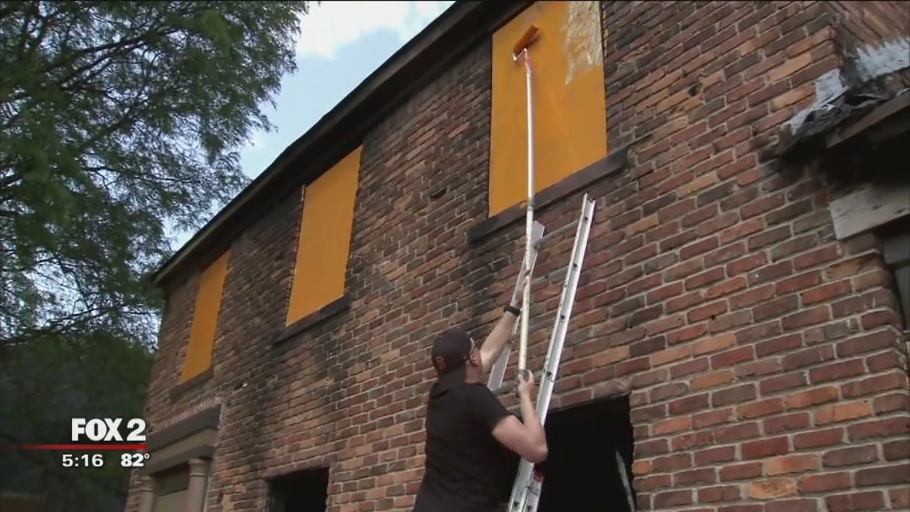 Detroit Blight Busters teams up with Google to repair burned out building near church