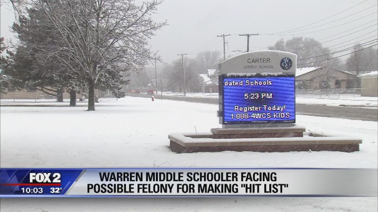 A Warren middle schooler is accused of making a hit list and is suspended from school.
