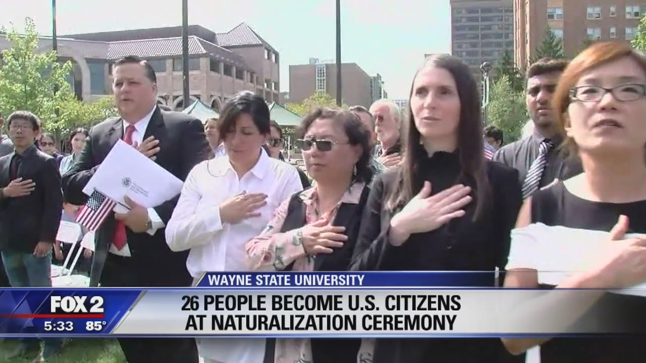 Wayne State hosts naturalization ceremony as 26 were sworn in as new US citizens