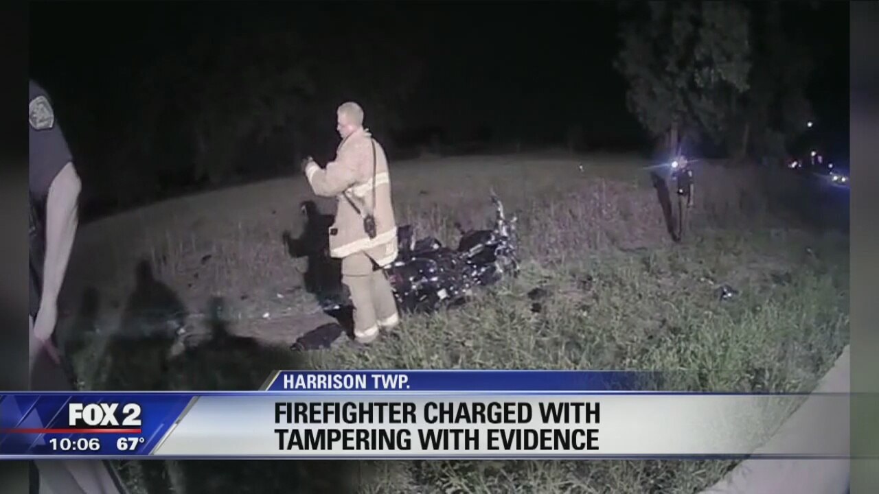 A firefighter in Harrison Township has been charged with tampering with evidence after a pill bottle couldn't be located at the scene of a fatal accident.?