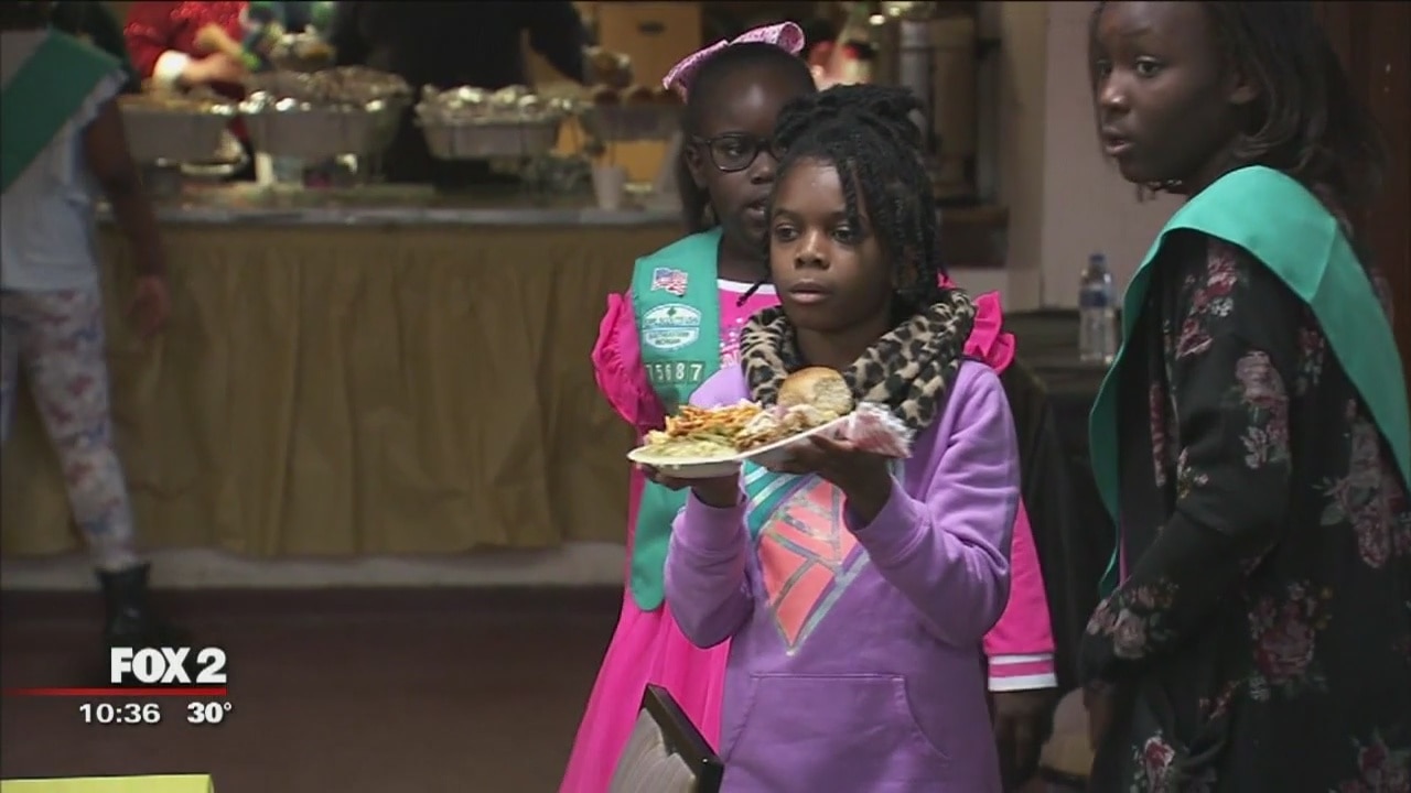 Girl Scout troop continues Thanksgiving tradition of serving dinner at Detroit church