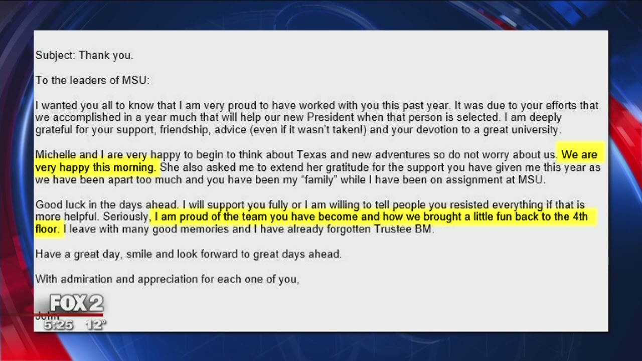 Engler quit last week amid public backlash over his recent comments about Larry Nassar survivors "enjoying the spotlight." Just hours after he announced his resignation, and a resignation date of Jan. 23, the Board of Trustees unamiously agreed to accelerate his resignation, and to appoint Dr. Satish Udpa as new interim president, effective immediately.?