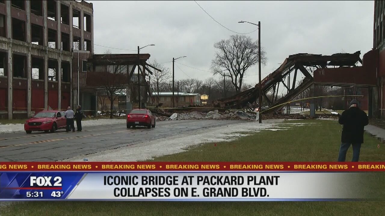 A pedestrian bridge at the historic Packard Plant has collapsed in Detroit.