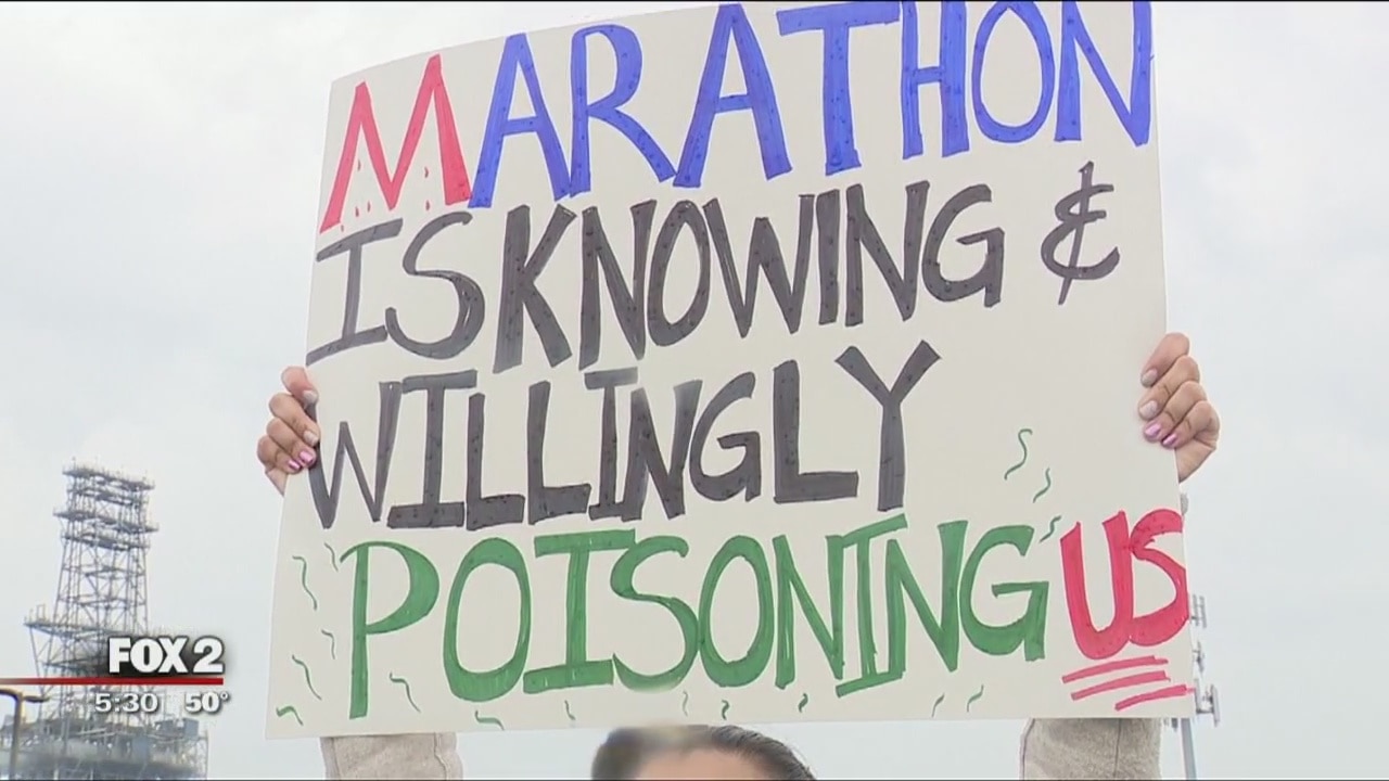 Marathon flare causing foul odor, protests