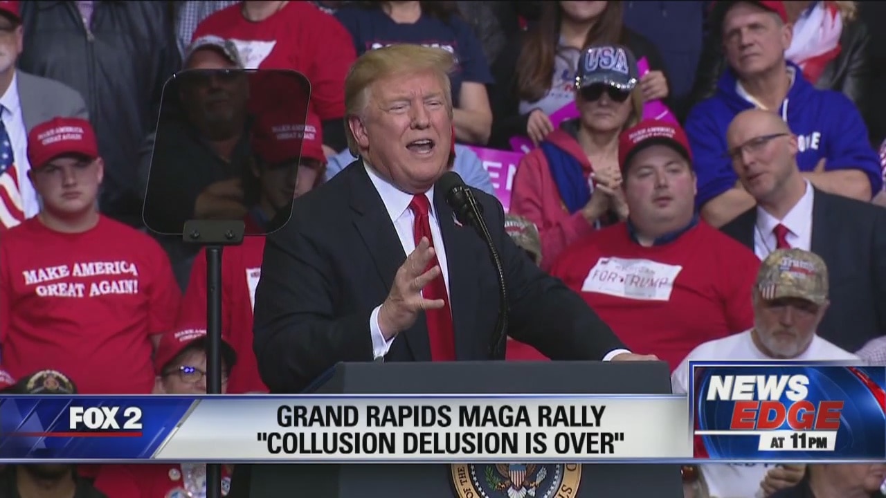 Trump touts Mueller probe findings at Grand Rapids rally