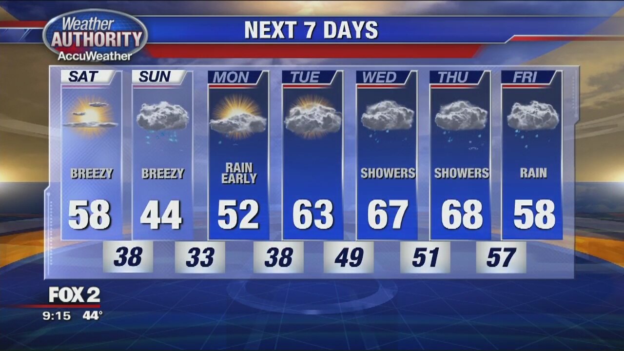 Mild sunshine for Saturday. Rain moves in early Sunday. Sunday will be chilly and wet.