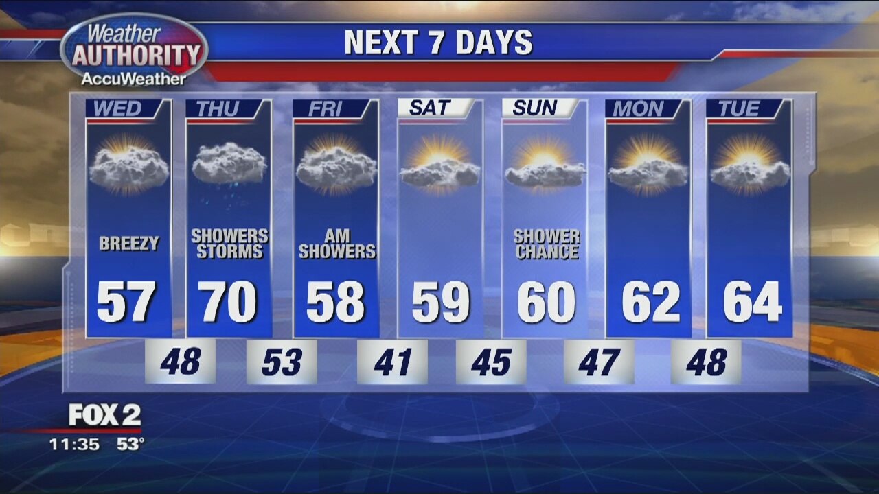 A sun/cloud mix will filter the sunshine at times. Breezy conditions continue to raise concerns for flooding near the lakeshores.